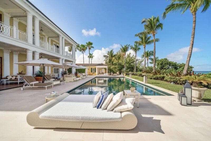Located on the north shore beach within the exclusive gated golf course community of Ocean Club Estates on world-famous Paradise Island, Pembroke House offers breathtaking elevated panoramic ocean views. Features of this symmetrically designed Georgian-style beachfront home include a grand two-story foyer, a gourmet kitchen with an eat-in family dining area, and a separate spacious formal dining room. The family room in the west wing and private wood-paneled study in the east wing, each room offering working fireplaces, are separated by a formal great room with a series of French doors that open to the pool with views of the ocean beyond. Ascending the flying staircase with a gallery landing, the second floor boasts 4 en-suite bedrooms, three boasting generously proportioned balconies. Two symmetrically designed cottages, one having two additional en-suite guest bedrooms and the other containing a 2-car garage with staff quarters and a managers office above, separate a lushly landscaped quadrangle with a central fountain. The 50-foot lap pool is complimented by a jacuzzi spa, set within the ocean-facing patio area boasting an outdoor grill, kitchen and poolside dining perfect for hosting parties and entertaining guests. Additional features of this palatial property include computerized lighting throughout the house, a multi-zone speaker system, a gym room, hardwood floors throughout the entire home, 12-foot ceiling heights in all rooms, 150 linear feet of beach frontage, hardwood doors and windows with hurricane-rated impact glass, and a standby generator.